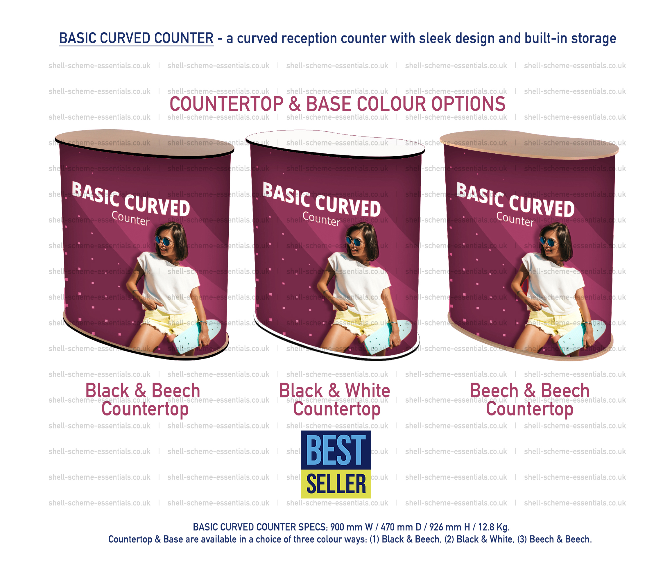 This compact unit is available with or without graphics and comes in a choice of three countertop/ base colour combinations: