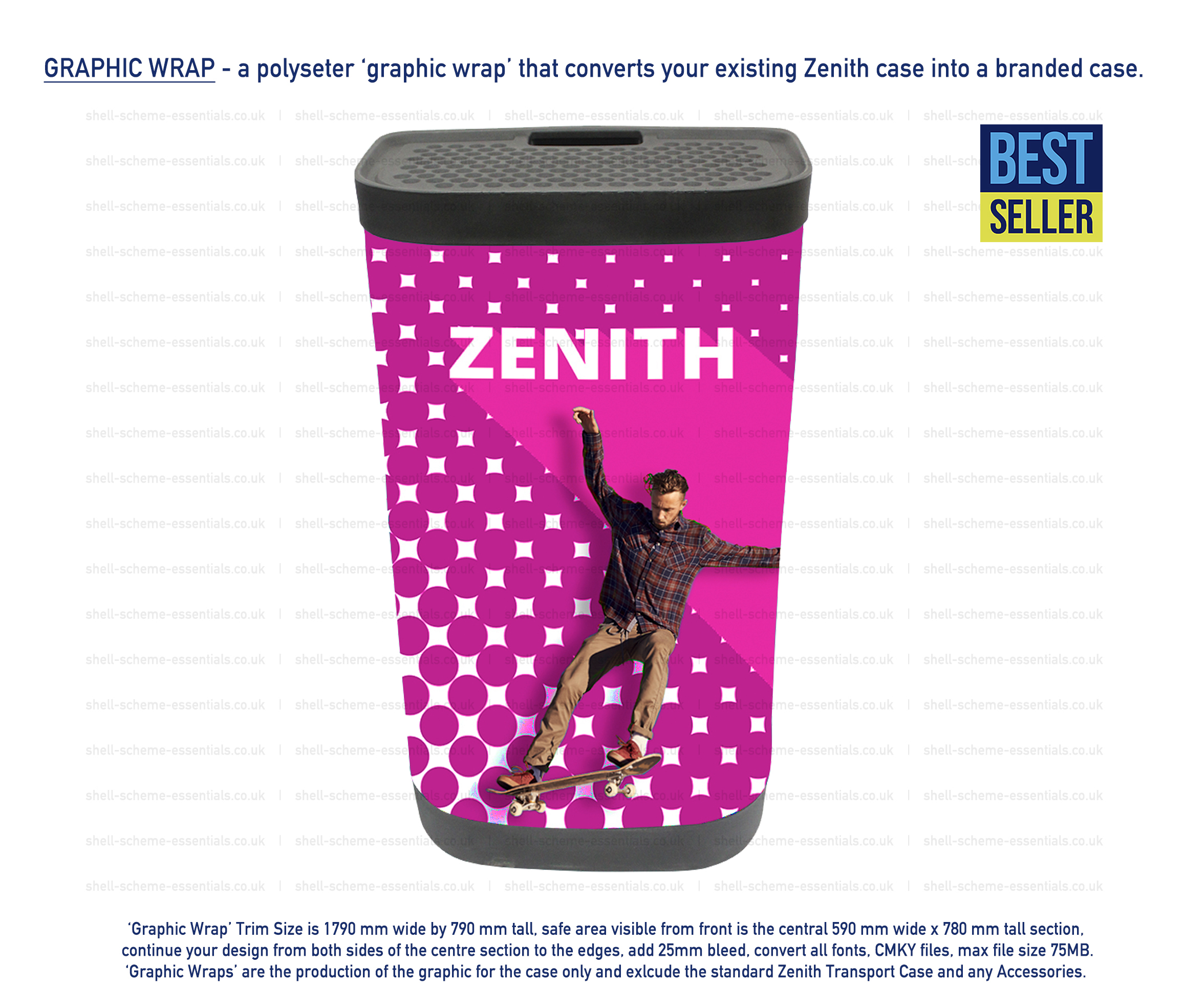 Convert your Zenith Popup Stand case into a fully branded counter with this Graphic ‘Wrap’ from either your own artwork or artwork we generate for you.